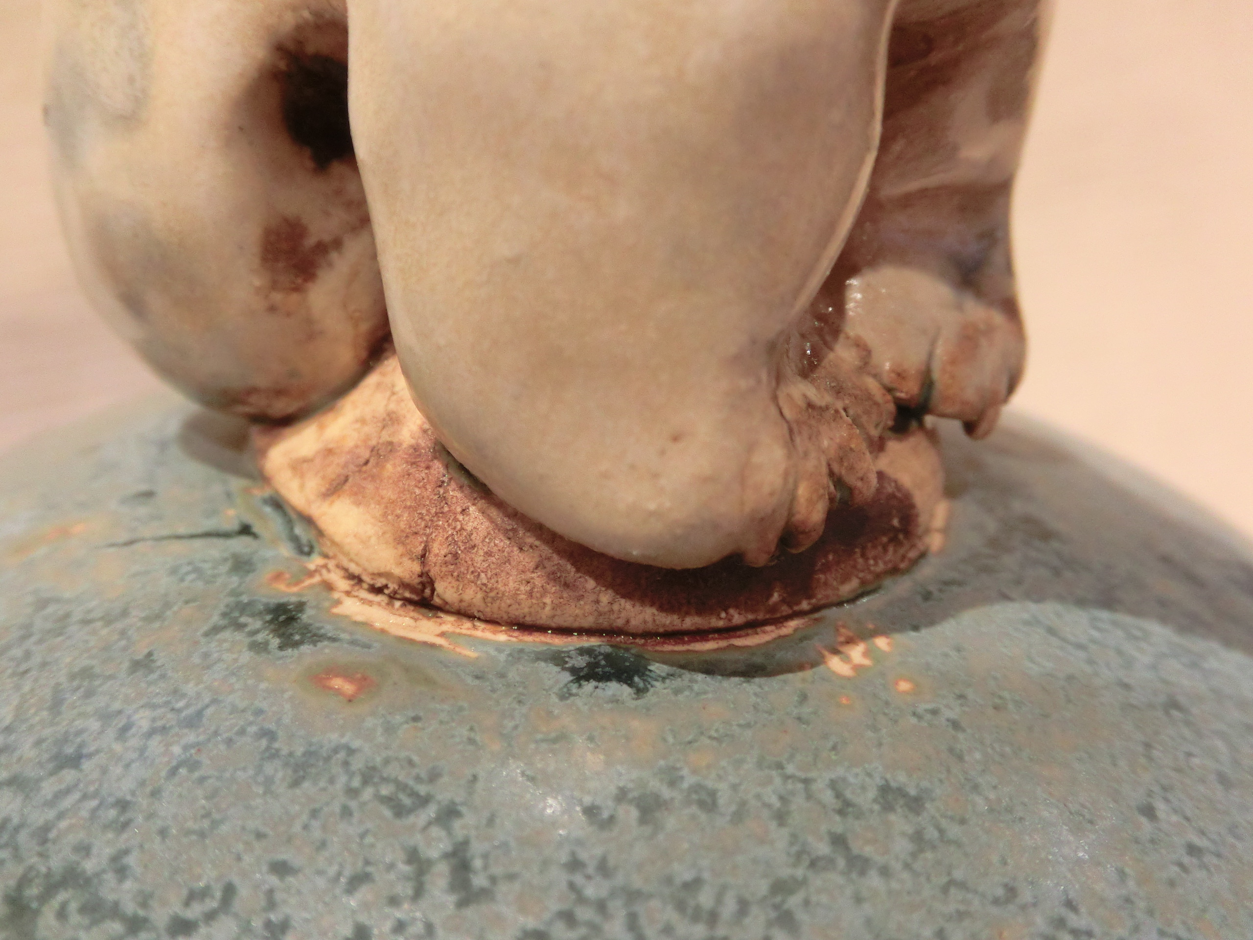 One jar with two lids. Why? You want the finished piece to have the best elements in combination. If I made one lid, or one handle for a jar or mug, what are the chances that that one would fit or be proportional? Make an extra (or two, or three). In this case I just finished both lids, bear and bird.